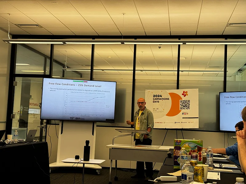 The CARNATIONS community gathered in Chicago to share research advancements, exchange technical knowledge, and strengthen collaboration across academic, industry, and public-sector partners. The event featured informative technical presentations, focused project discussions, and networking sessions that highlighted the scope of CARNATIONS research and its practical relevance to transportation systems.